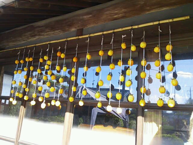 近所のおばあちゃんたちにご指導を受け手伝ってもらい、吊し柿が完成~♪