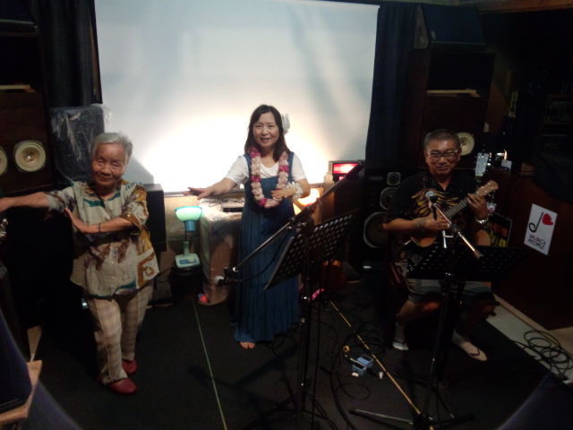お客さんで来られてた近所のおばあちゃん、ウクレレに合わせて、飛び入りで踊ってくれました。(゜o゜;)