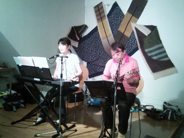 今日、フォーク村カフェで「イブニングSUN」のお二人がミニライブを