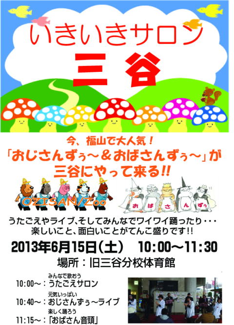 今日は「おじさんずぅ~&おばさんずぅ~」で、松永の西部市民センターで