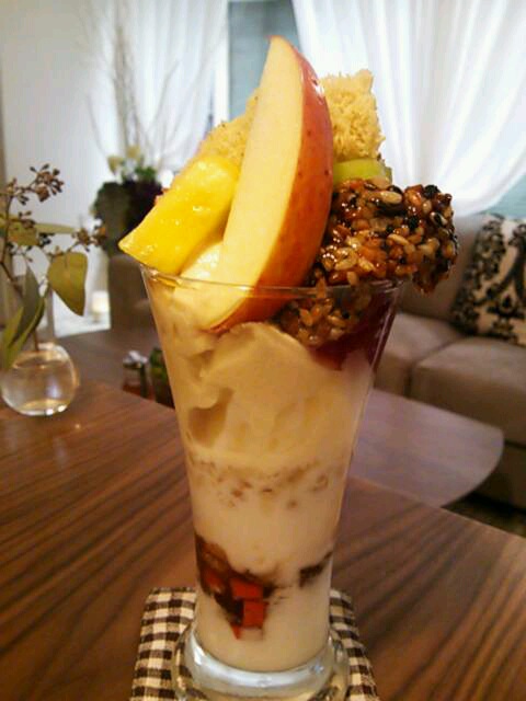 注文したのは、美肌になるという肌にいい物ばかりを使ってある「美肌パフェ」。甘味が少なく、新鮮な果物を沢山使ってあるパフェだった。