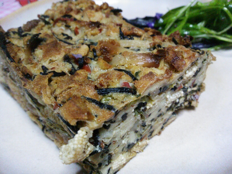 今日のランチは、お正月で疲れた体を癒せるように、蒸し野菜で体を温めおせちの味を思い出しながら、数の子やひじき、クワイを混ぜ合わせケーキ型で焼いた料理を用意しました~。