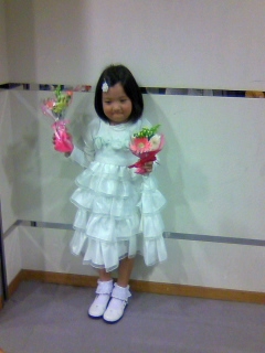 可愛いドレスで嬉しそうだが、ちょっぴり緊張