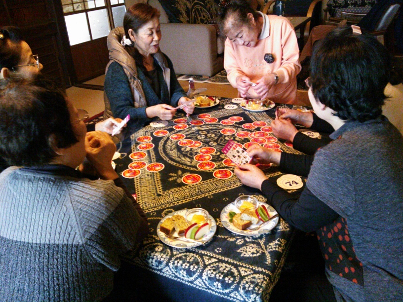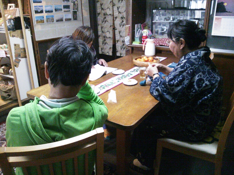 英語のレッスンをしている人、そのレッスンを楽しく見ている人、編み物に集中している人と好きなことを好きなように楽しみ、ワイワイガヤガヤ賑やかな1日だった~