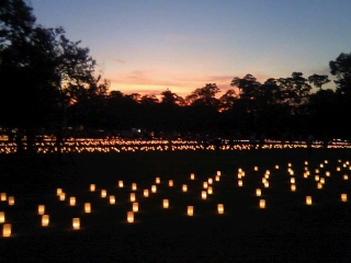 19時前になると どんどん人が集まり、1本ずつ蝋燭