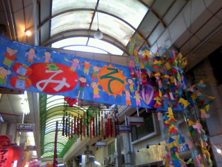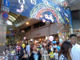 夕方、本通商店街で「七夕まつり」があり、みんなの