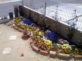 パンジーが春だ!春だ!と喜んでいるかのように咲きほ