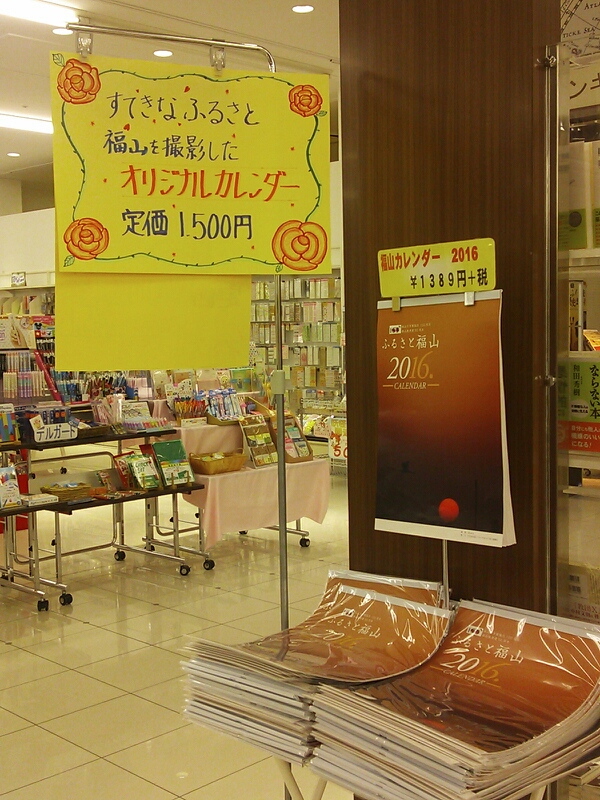 福山の素敵な場所を撮影したオリジナルカレンダーのことが、中国新聞に掲載されたので「くまざわ書店」では特設コーナーにて販売されています。