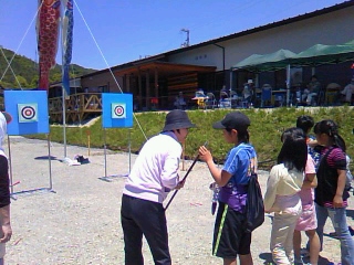 吹き矢あそびを楽しみ、午後からみんなが楽し