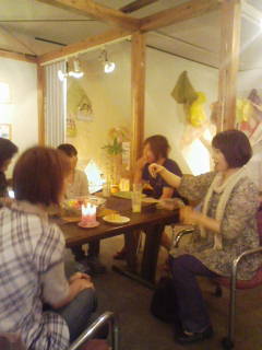 今日はカフェの外で珪藻土を使ってのワークショップが