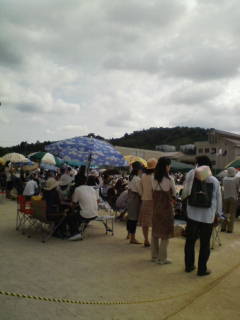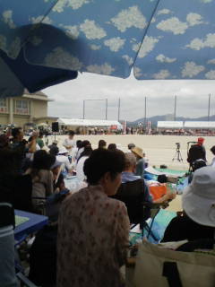 てきているのだろう、ビーチパラソル家族が多く、校庭