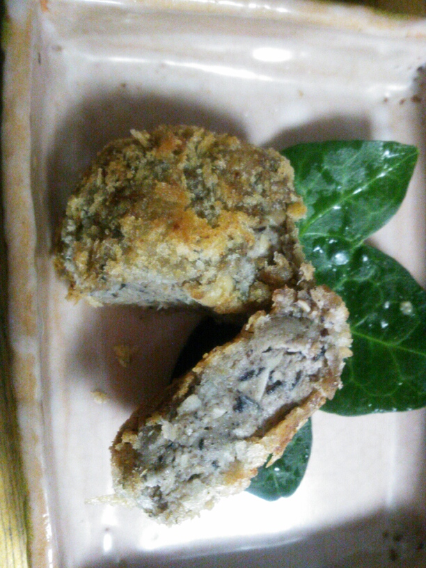 食物繊維たっぷりでヘルシーコロッケの出来上がり~パジルソースを添えてみると、より美味しく食べれたと大好評♪