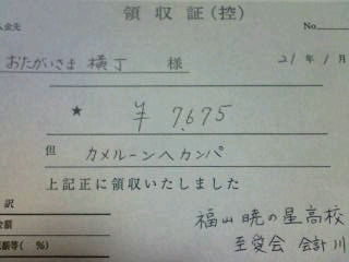 カメルーンへどうぞ!と7500円のカンパを下さった。