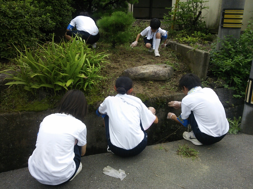今日は、木曜日のおばあちゃんずぅ~も加わっての草取りなので、中学生には刺激になり、おばあちゃんたちの仕事っぷりには驚いてスゴい!!の連発だった。本当にスゴい!!