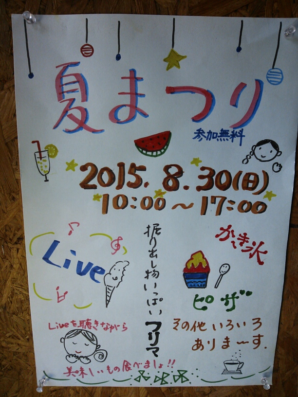 8月30日(日)10:00~17:00頃まで、ワイワイやっていますので覗いてみて下さいね!!