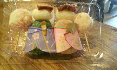 いる為少し赤いお餅、ぼんぼりはえび餅を使ってある。