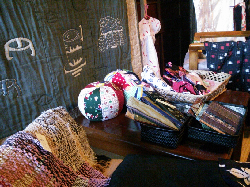 着物をリメイクした物や、畳の縁で作ったというペンケースなど、捨てるにはもったいないような物を上手に再生された作品です。