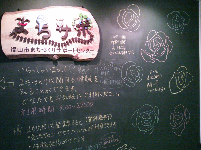 知らない事といえば、福山市市民参画センターの二階に、まちづくりサポートセンター「まちサポ」という素敵な場所が出来ていてビックリ!!
