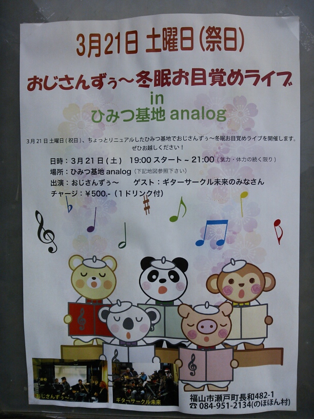 おじさんずぅ~が冬眠からそろそろ覚めるようです。おじさんずぅ~の久々のライブです。