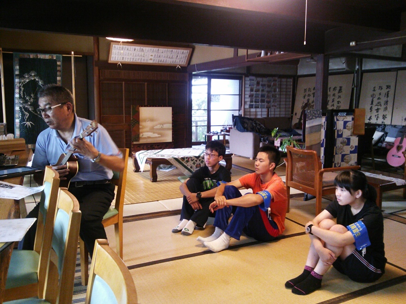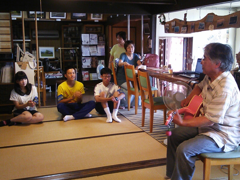 ウクレレの先生の登場で、無理をお願いしてウクレレを弾いてもらった。
