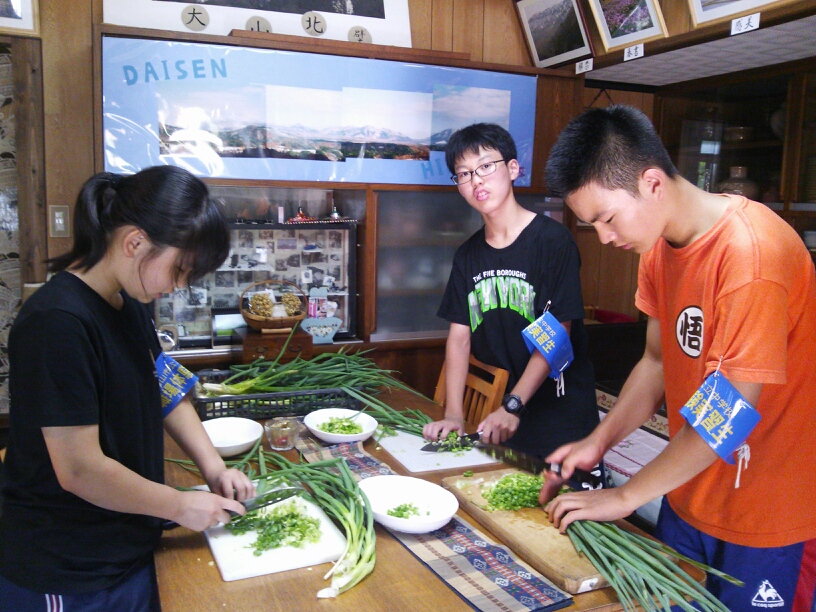 のほほん村で収穫したネギを涙を流しながら切っているところ