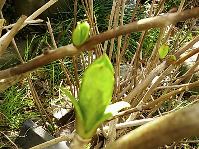 のほほん村にも新しい命が誕生しています。紫陽花の新芽